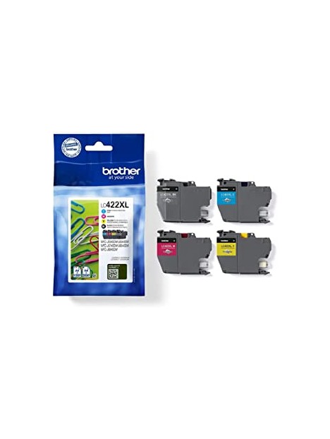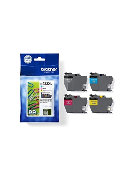 Pack de 4 cartouches d'encre originales Brother LC422XLVAL. Idéal pour des impressions de qualité professionnelle avec une autonomie élevée. Compatible avec une large gamme d'imprimantes Brother.